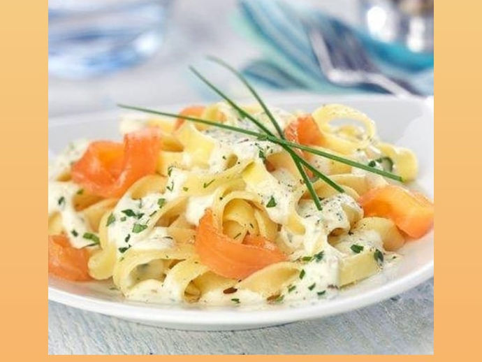 Découvrez notre recette de tagliatelle au saumon fumé salé au sel sec fumé au bois de Hêtre dans une sauce onctueuse à la crème....